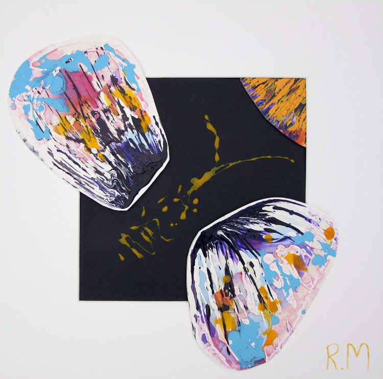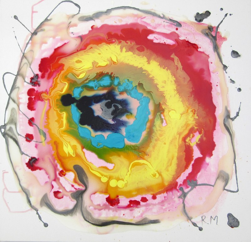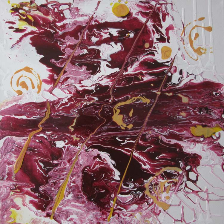 Description: Inspiration was taken from  reading ‘Artists & Illustrators’ Issue 343 – working with acrylic mediums’. This piece is an exploration of how medium based colours pour and mix – with tasty results.