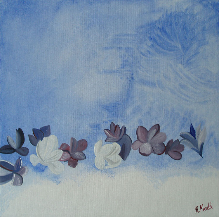 Description: A group of flower heads have been caught in a breeze. Lifted above the clouds, they appear to dance.