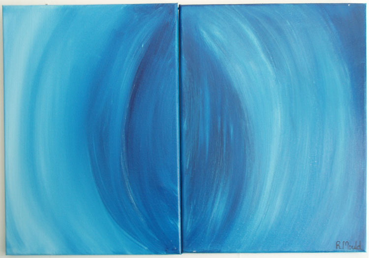 Description: Abstract, two canvasses showing water spiralling around the centre of a whirlpool. The varnish finish reflects light just like water. The movement of the water draws the observer into the painting.